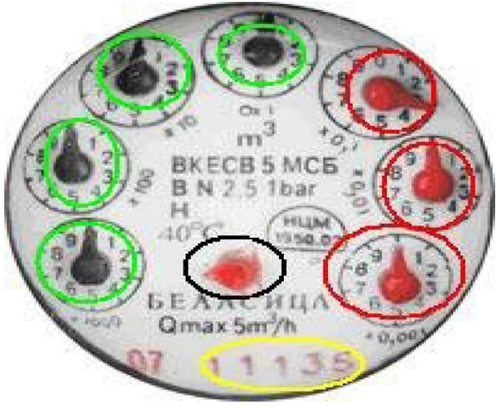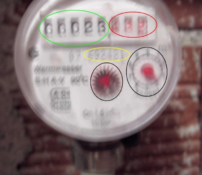 Пуснете топла вода и вижте кой водомер се върти (чрез малката „звездичка“/индикатор). Това е водомерът, който трябва да отчетете.